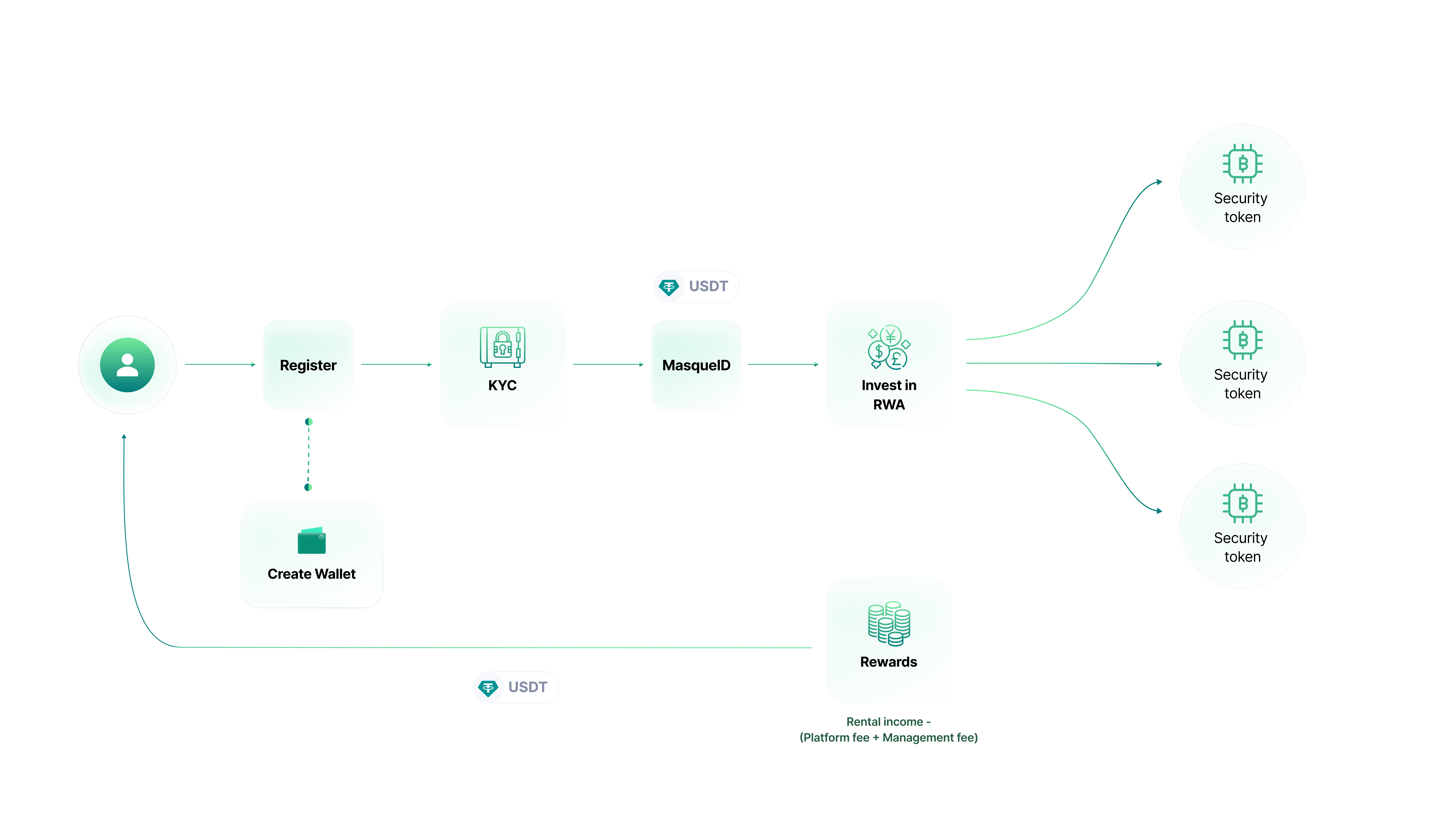 * Based on these snapshots, rental income is calculated for users, proportionate to their ownership of security tokens within the pool.